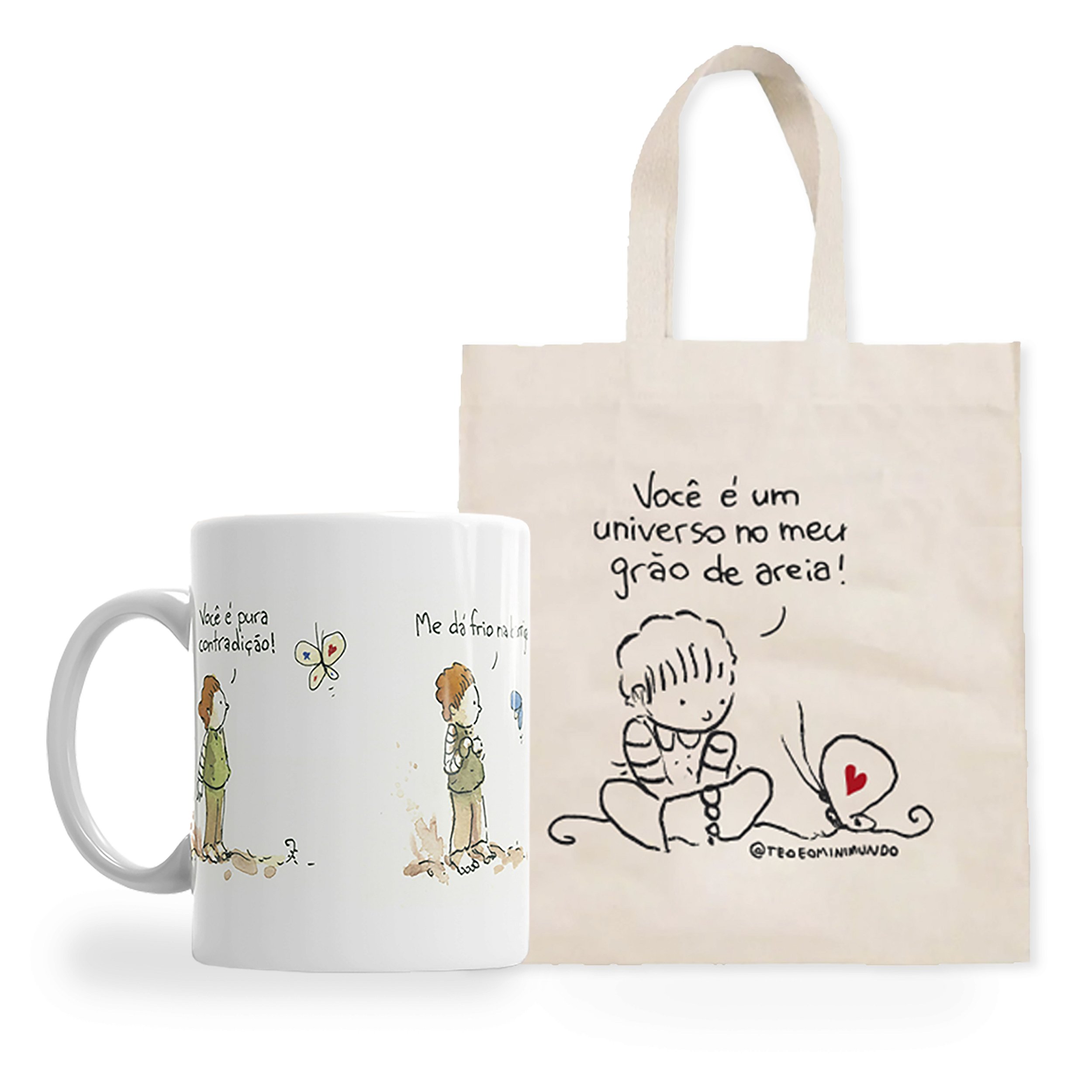A caneca 'Quentinho no Coração' de Téo & O Mini Mundo oferece aconchego e encanto, acompanhando você em momentos especiais com Téo e Eulália.