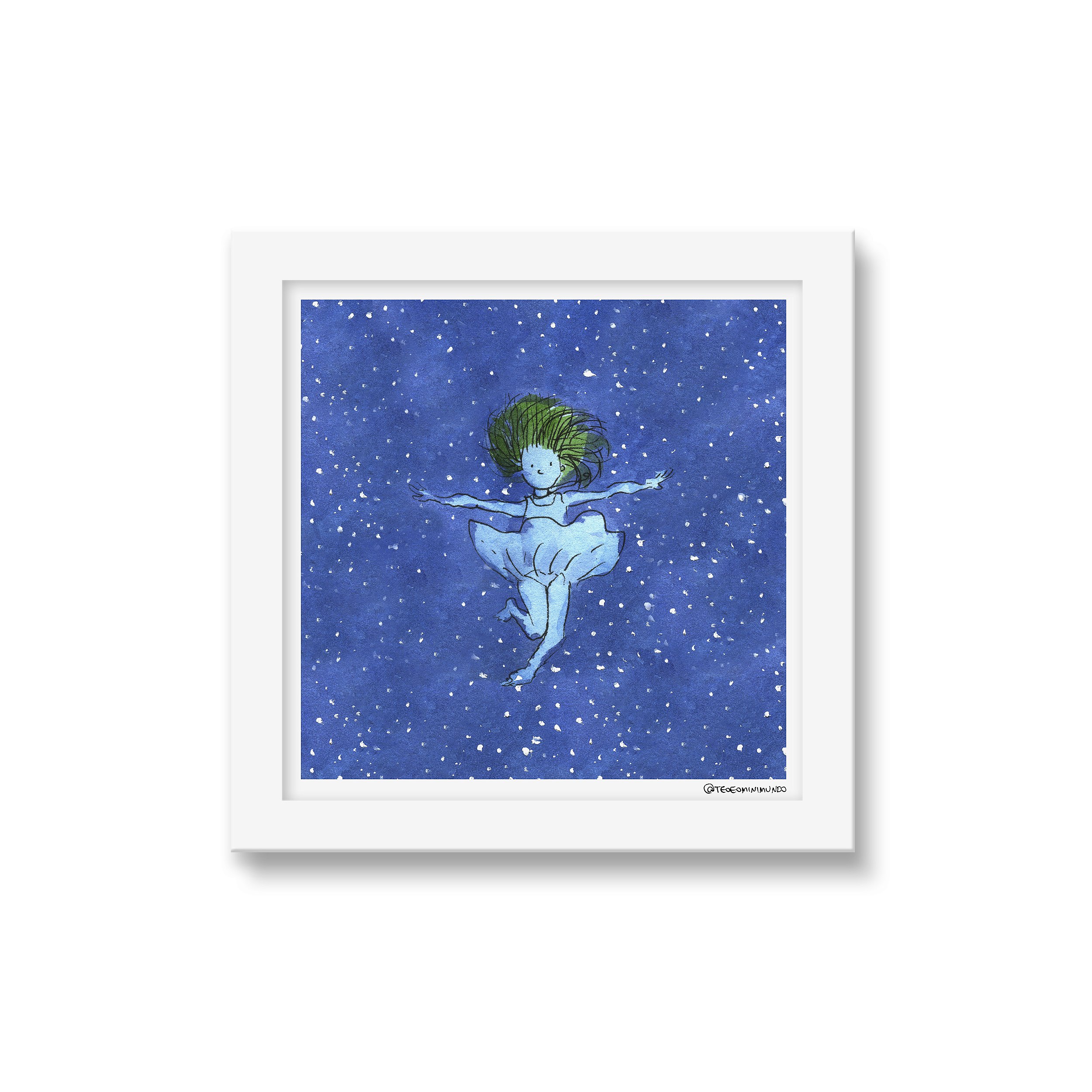 Mergulho no vazio - Tirinha Téo & O Mini Mundo - 15x15 cm - Moldura branca
