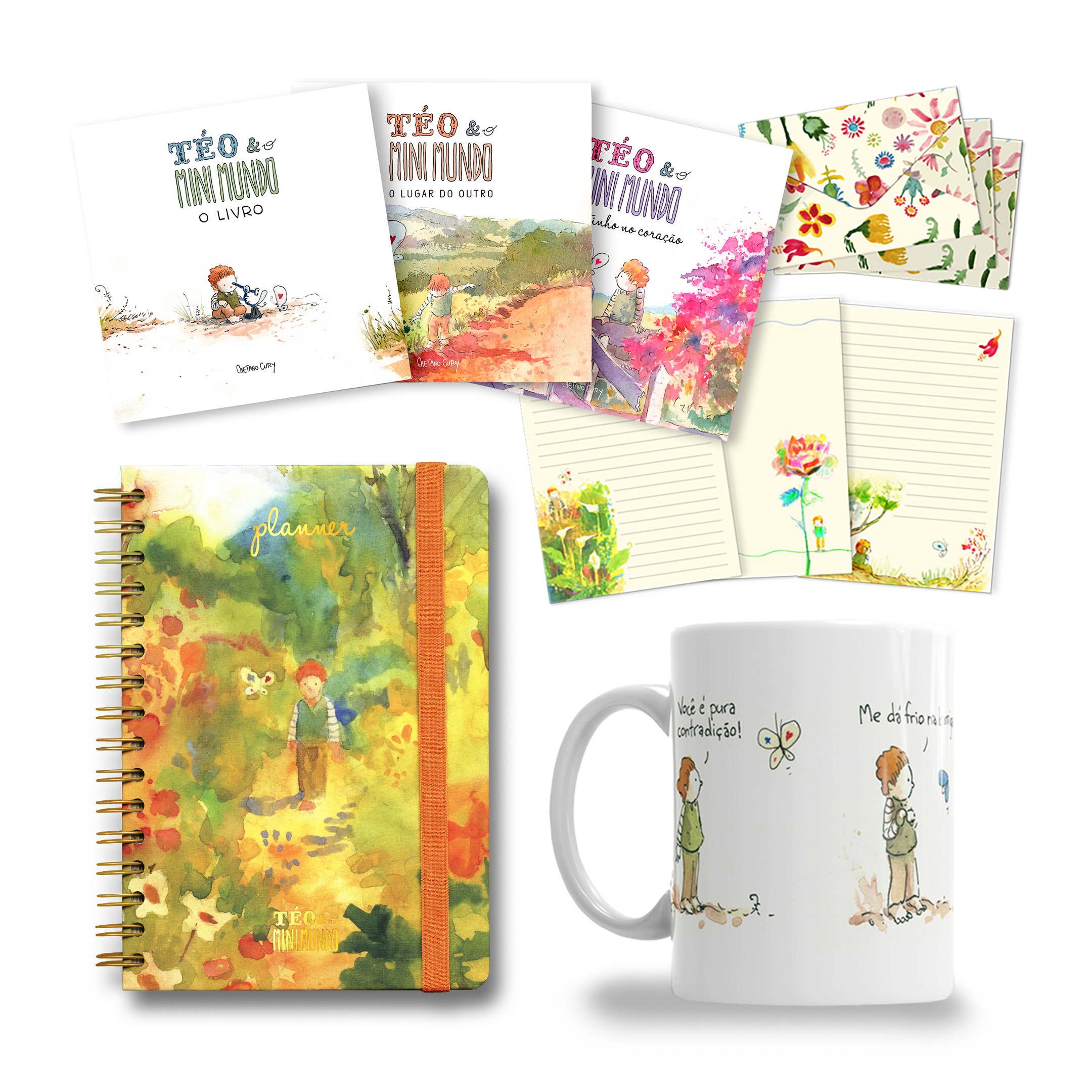 Loja oficial dos produtos Téo & O Mini Mundo. Livros, quadros de tirinhas e papelaria